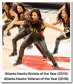 As a Hawk's dancer, she won Rookie of the Year and Veteran of the Year honors and